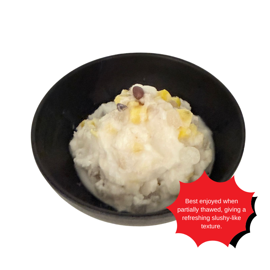Attention: Chew well before swallowing. Contains coconut milk. A white milky apperance after defrosting is normal. Please be assured it is safe to eat. It is recommended to stir well before enjoying.